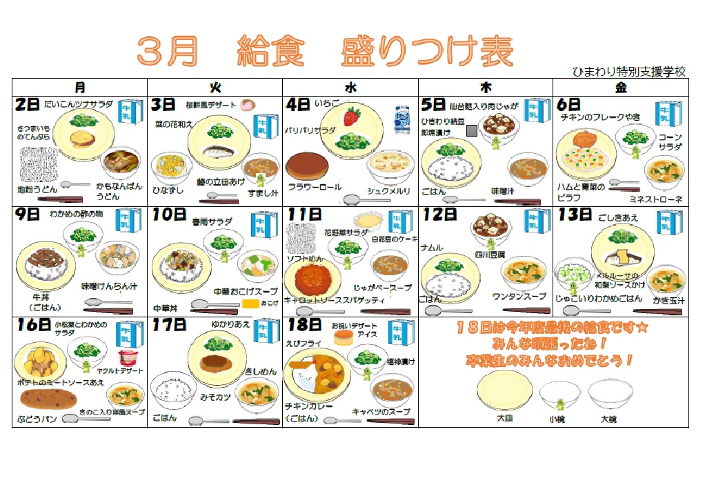 | 2026年3月1日 | お知らせ | 給食献立表を更新しました。 |