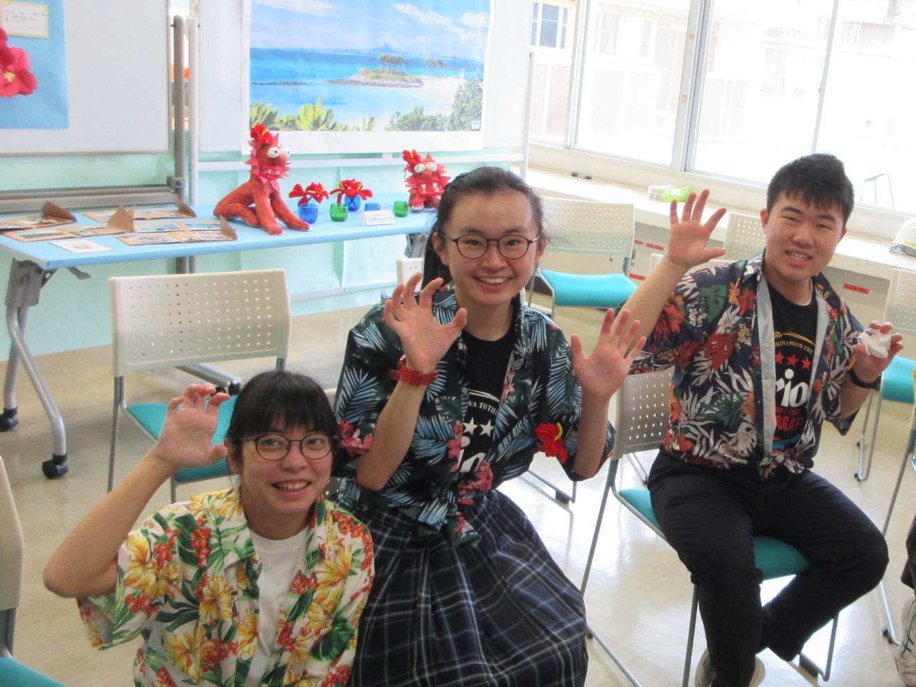 朝からカヌー体験をしました。あいにくの曇天でしたが、風を感じながら船に乗り、魚に餌をあげる体験をして、海と一体になりました。その後は、紅芋タルトづくりに挑戦しました。タルトの生地を伸ばしたり、餡を絞ったりして、オリジナリティ溢れるタルトを作りました。午後は美ら海水族館へ。大きなジンベイザメやたくさんの魚に感動したようで、たくさん写真をとっていました。いろいろな体験ができ、とても濃い一日となりました。
