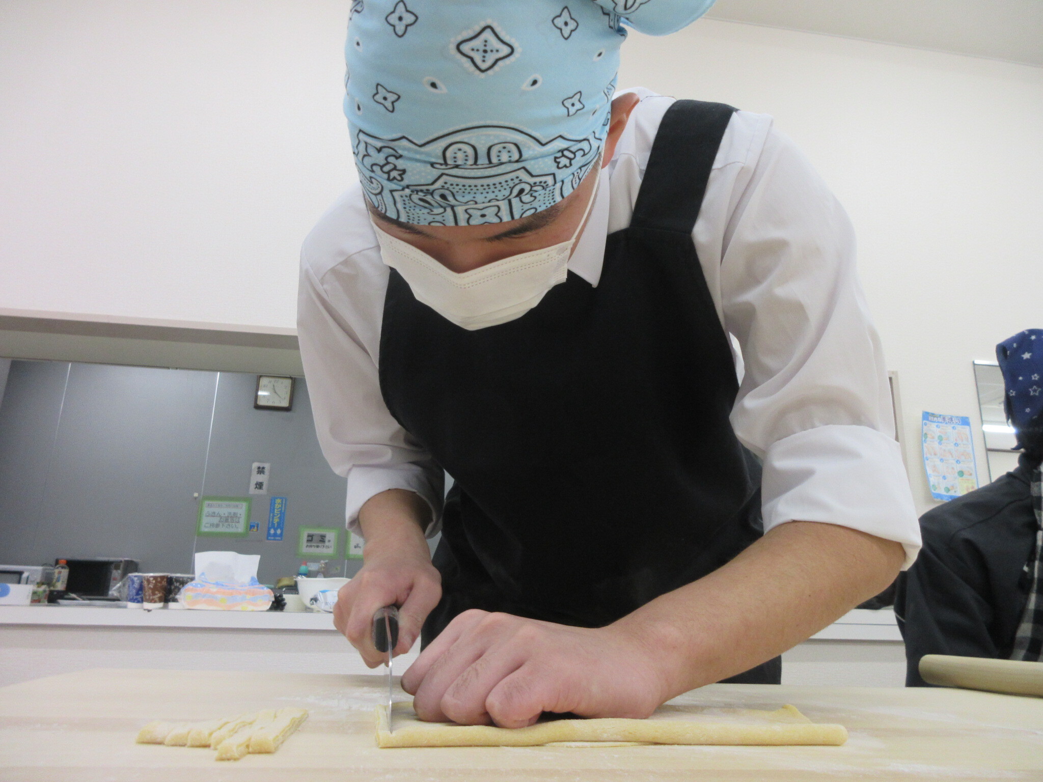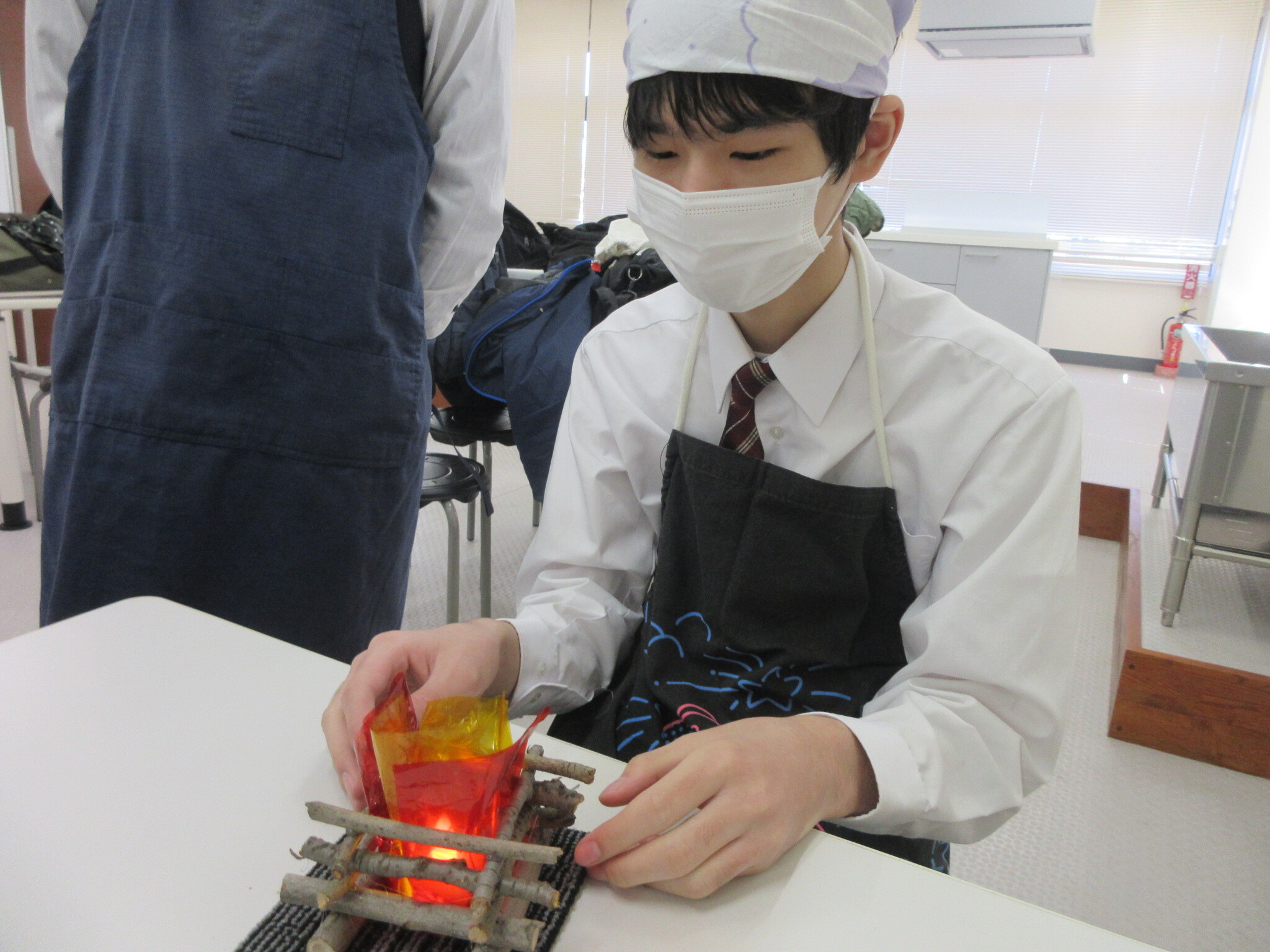 2日目は農業ふれあいセンターに行って、野菜の収穫やパスタ作り、キャンドル作りの体験をさせていただきました。野菜の収穫では、とても大きなブロッコリーを収穫しました。パスタ作りでは、自分で生地から作ってこねたり伸ばしたり、とても達成感のある体験でした。キャンドル作りでは、落ちた桜の木を使って燃えているように見えるキャンドルを作りました。暗いところで見ると本当に火が燃えているようでとてもきれいでした。宿泊学習を通して友達と協力することを学び、充実した2日間になりました。