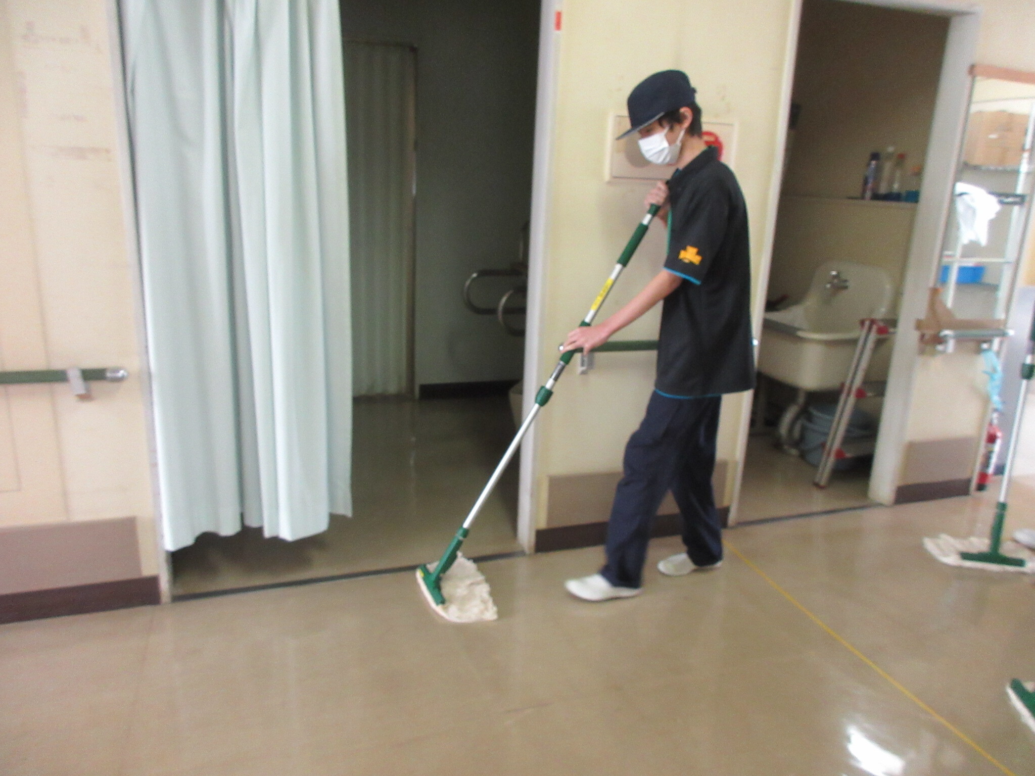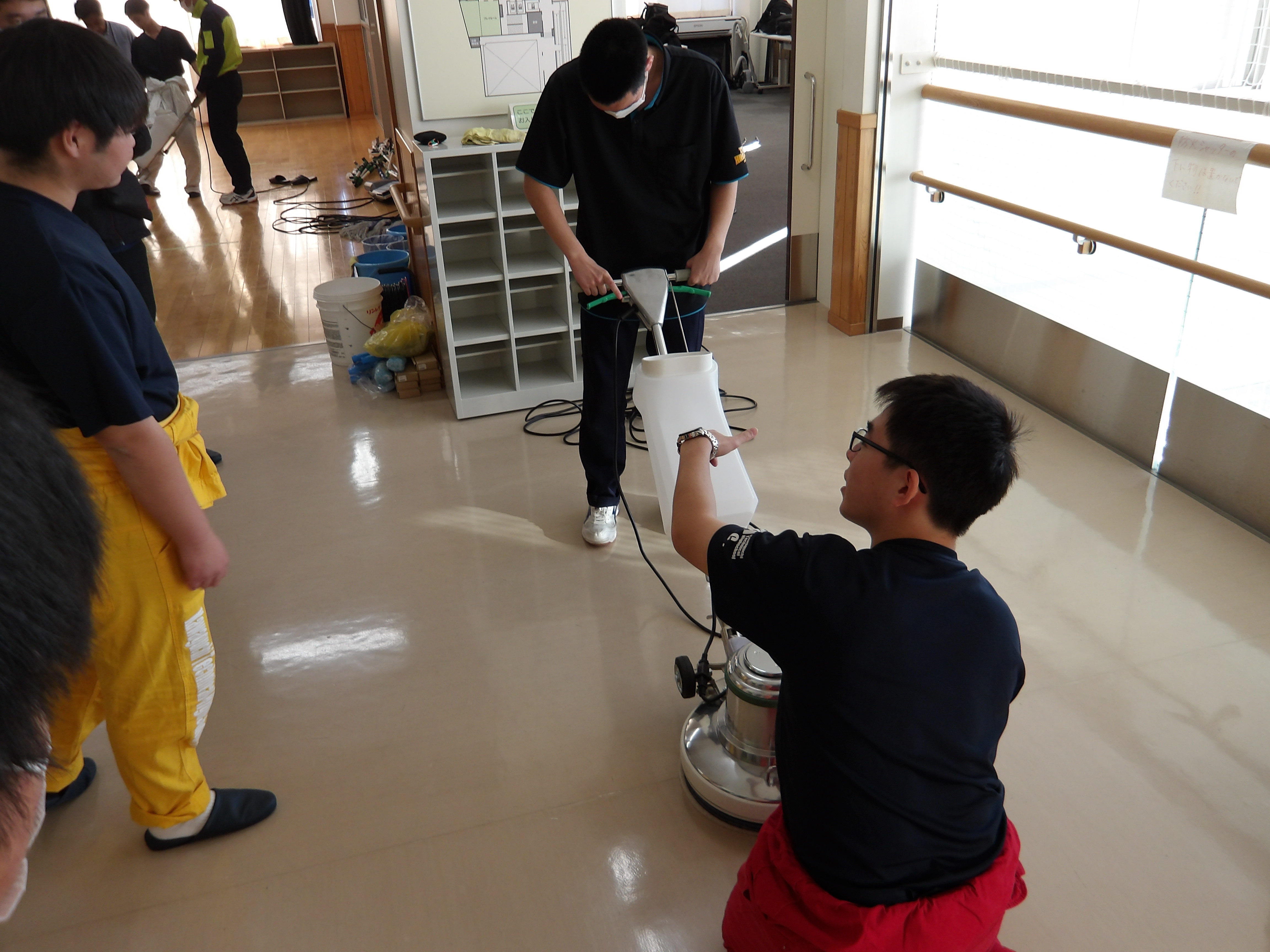 12月に入って4日間校内職業を行いました。日常清掃協会の方に講師で来ていただいて、掃除のやり方の基本から丁寧に1つずつ教えていただきました。ポリッシャーなど、知らないこともたくさん知られて勉強になりました。清掃道具の使用方法も知ることができました。