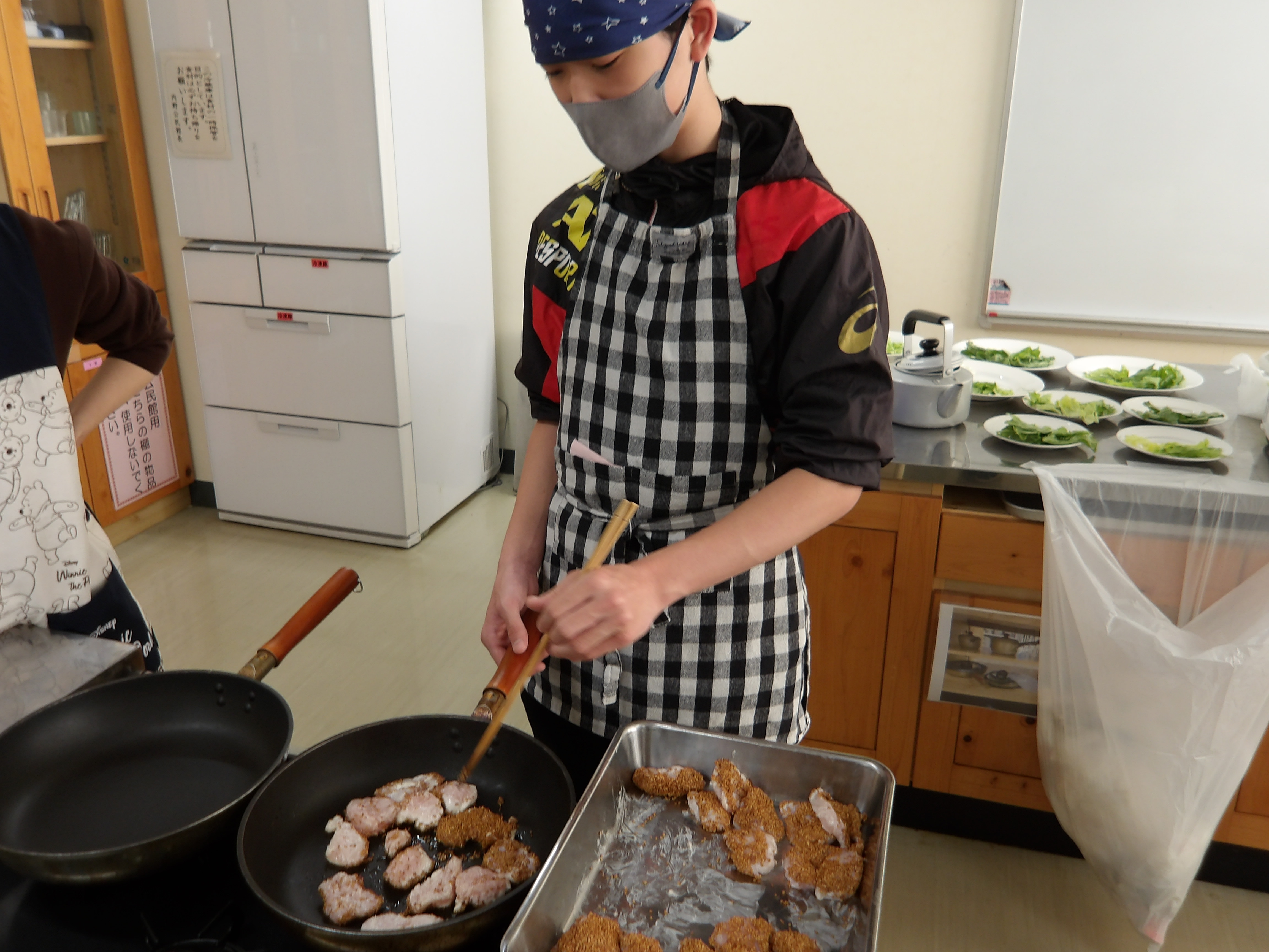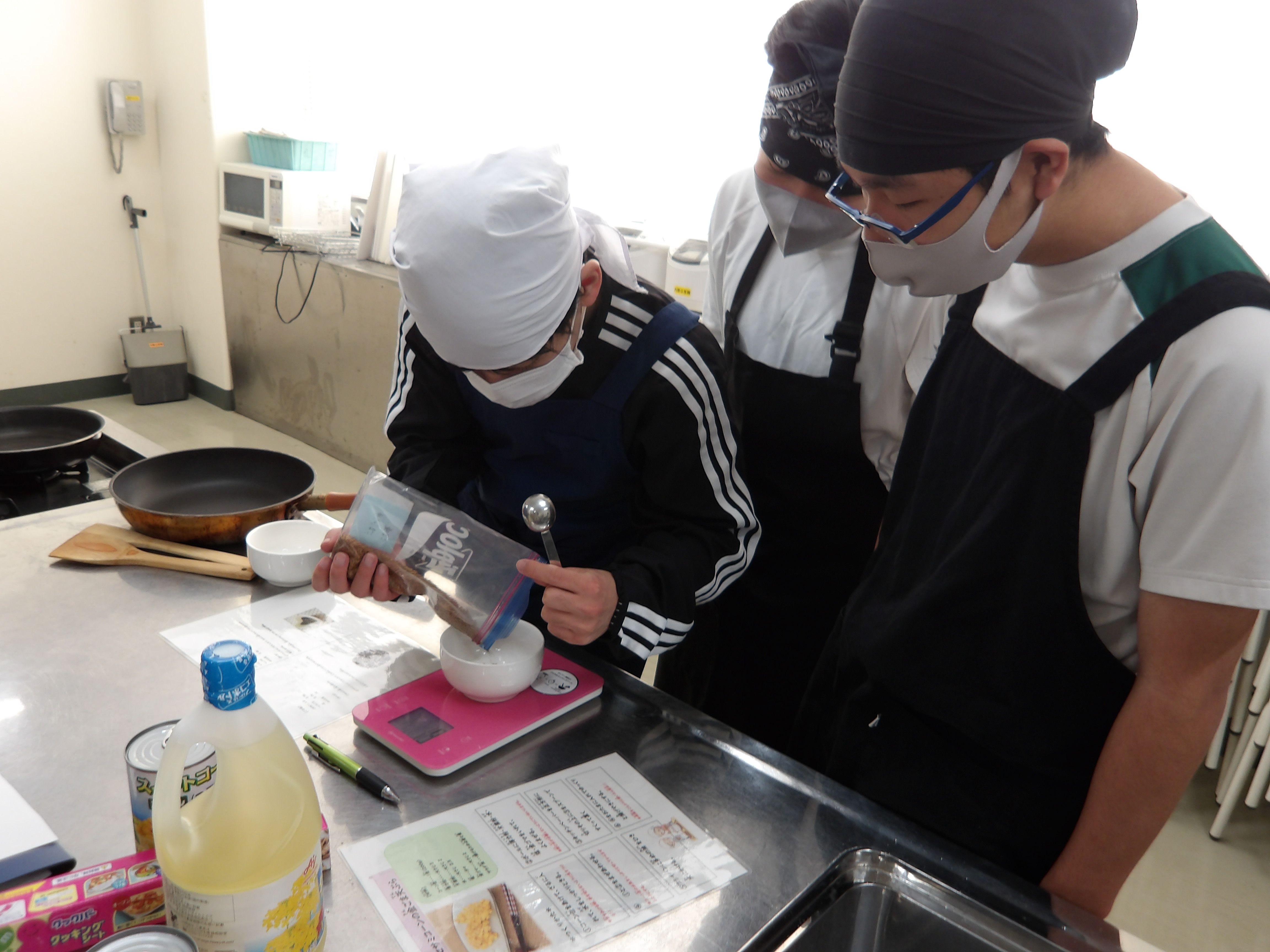 12月9日に1,2年生で収穫祭を行いました。春の田植えから秋の稲刈りまで農家の倉橋さんと一緒に育てた新米を使って、調理実習をしました。一生懸命に選別した金ゴマを使用したレシピも用意したり、豚汁・デザートも作りました。グループに分かれて栄養たっぷりの料理が完成しました。