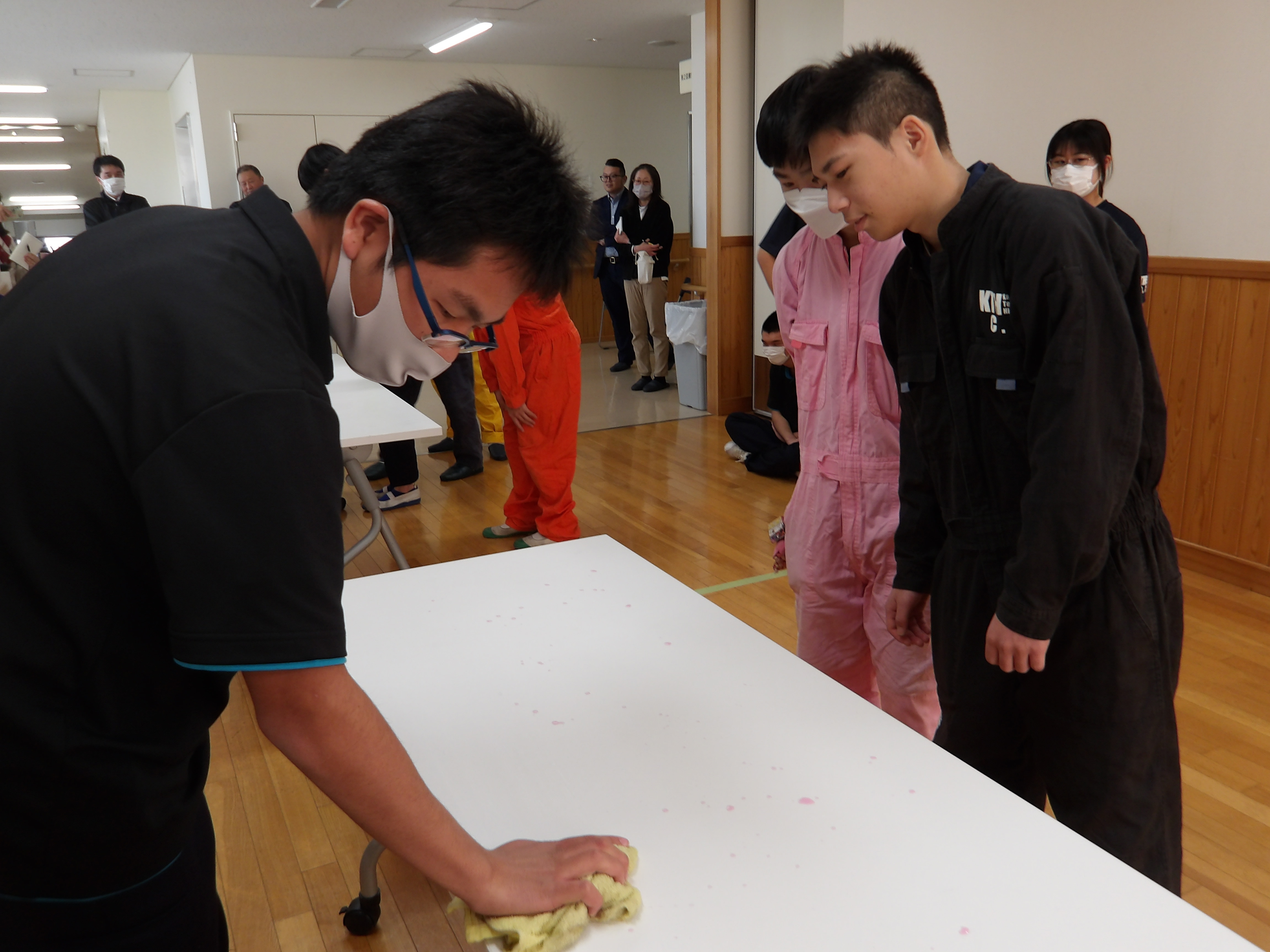 12月16日に川口工業高校の掃除部との交流会をしました。校内実習の時に教わったお掃除のやり方を基にゲーム感覚でお掃除対決をしました。みんな白熱した対決を楽しみ、掃除部の方と仲良くなることができました。