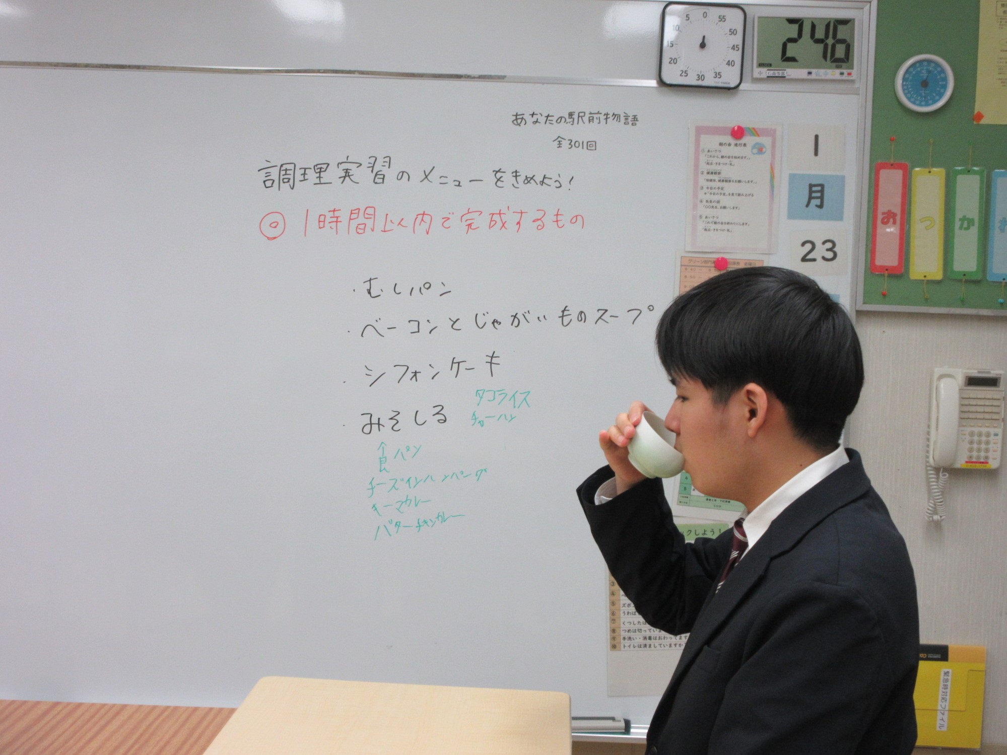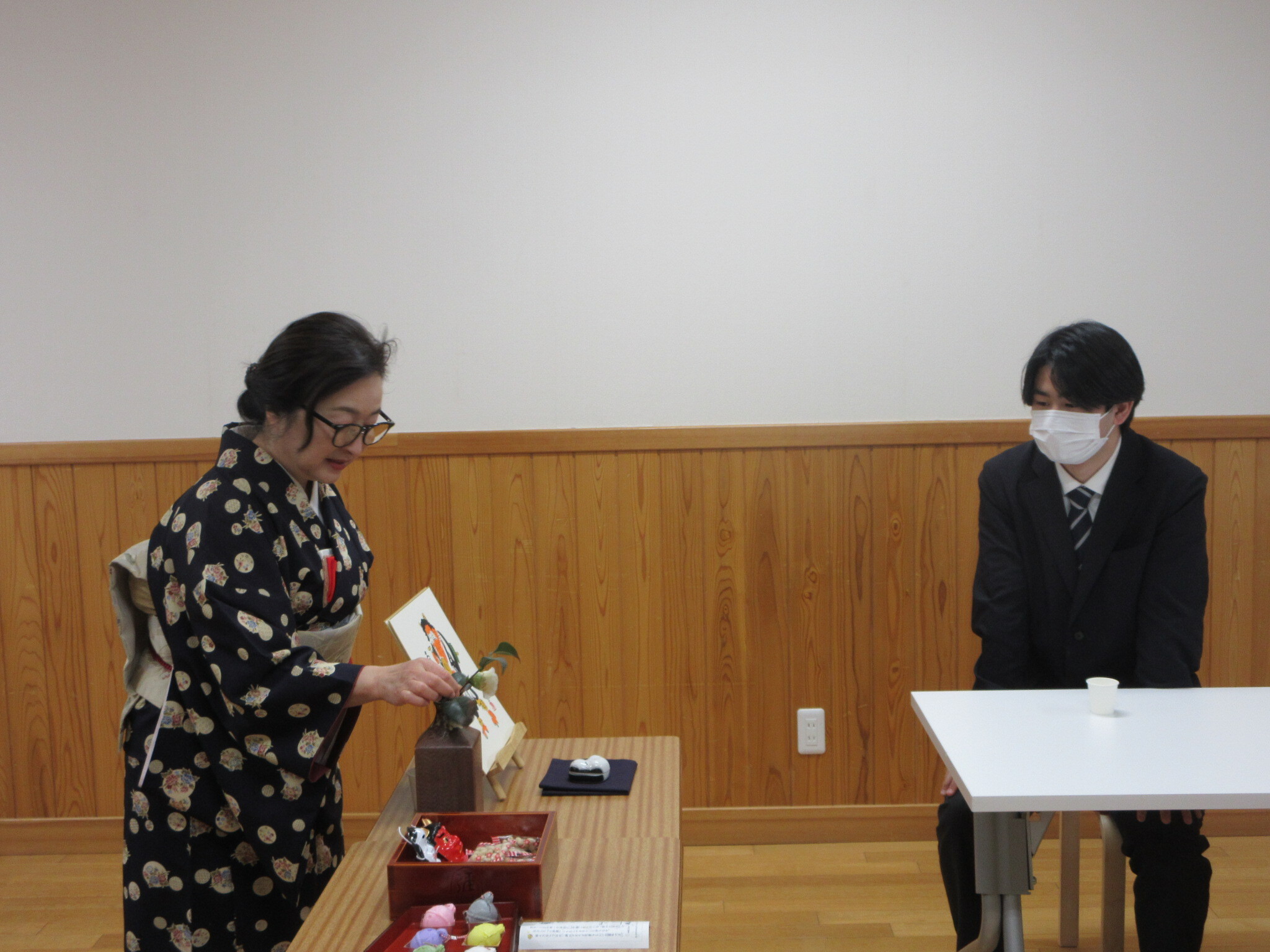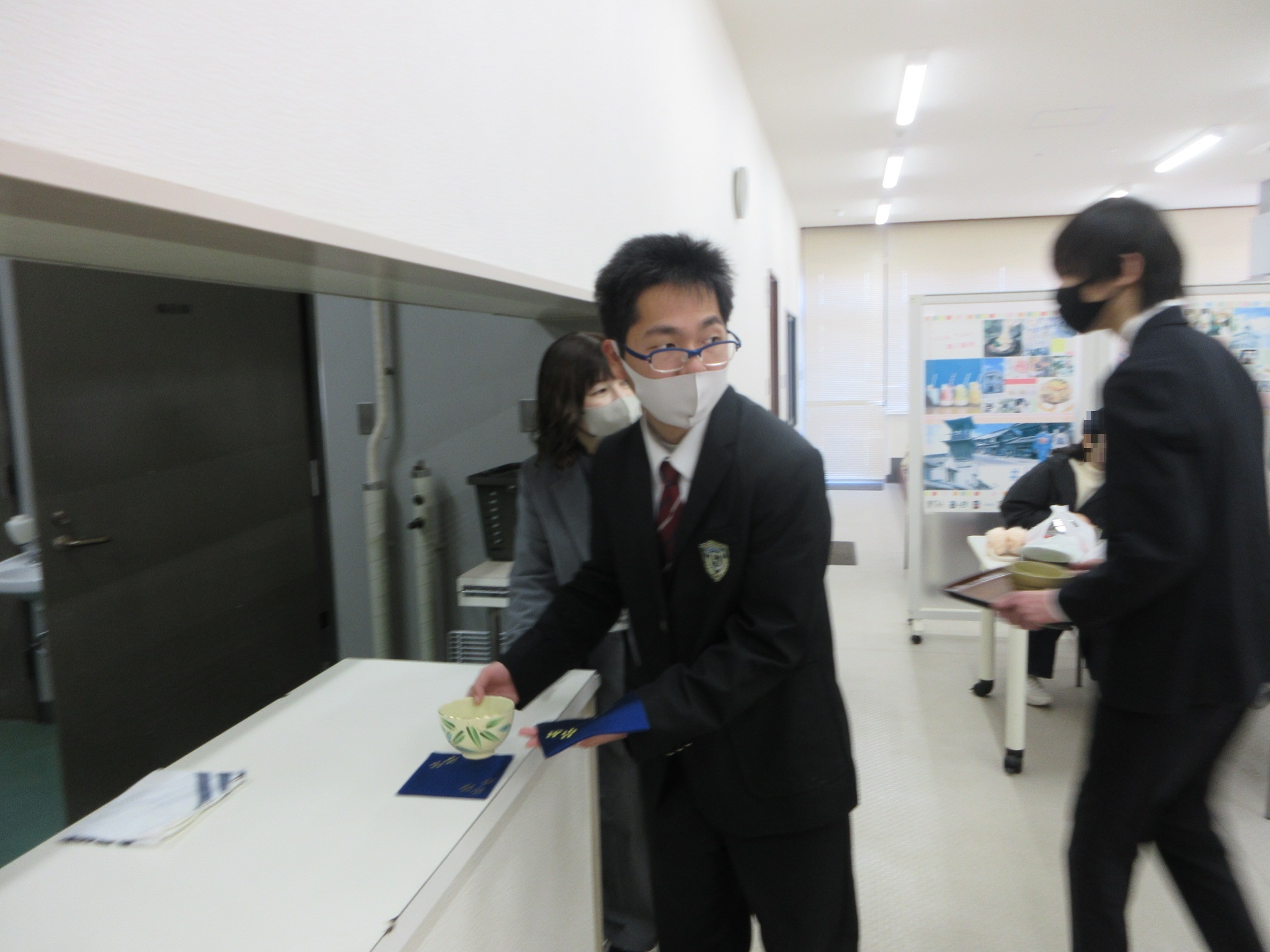 1月23日に茶道でお世話になっている阿部先生に来ていただいて、3年生向けに社会人になるための礼儀作法やマナーを講義していただきました。先生が点ててくださったお茶をいただきながら節分をテーマに大切な心配りなどをみんな真剣に聞いていました。
