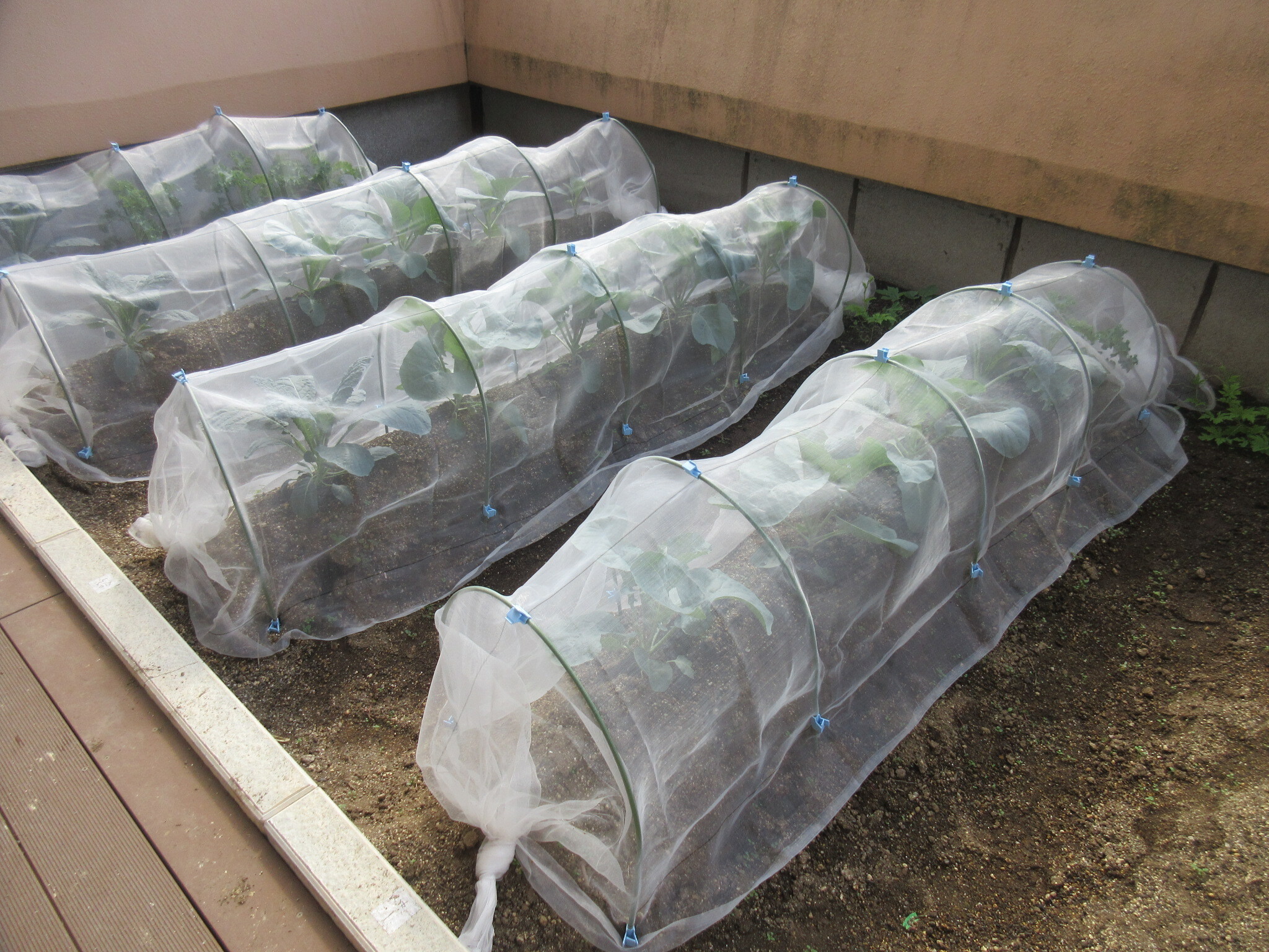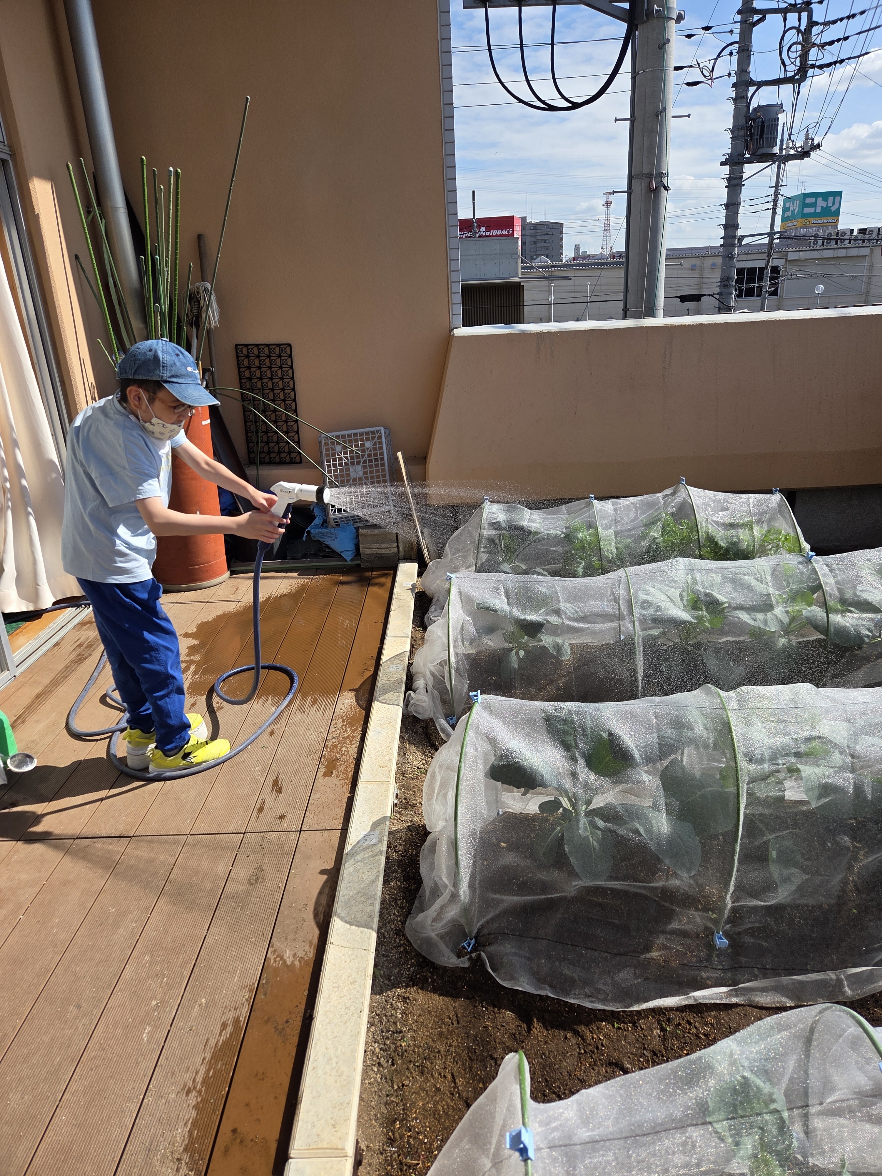 10月…野菜を虫から守るためにネットをかけ、雑草を取りました。1週間に3回ほど、水やりをしました。
