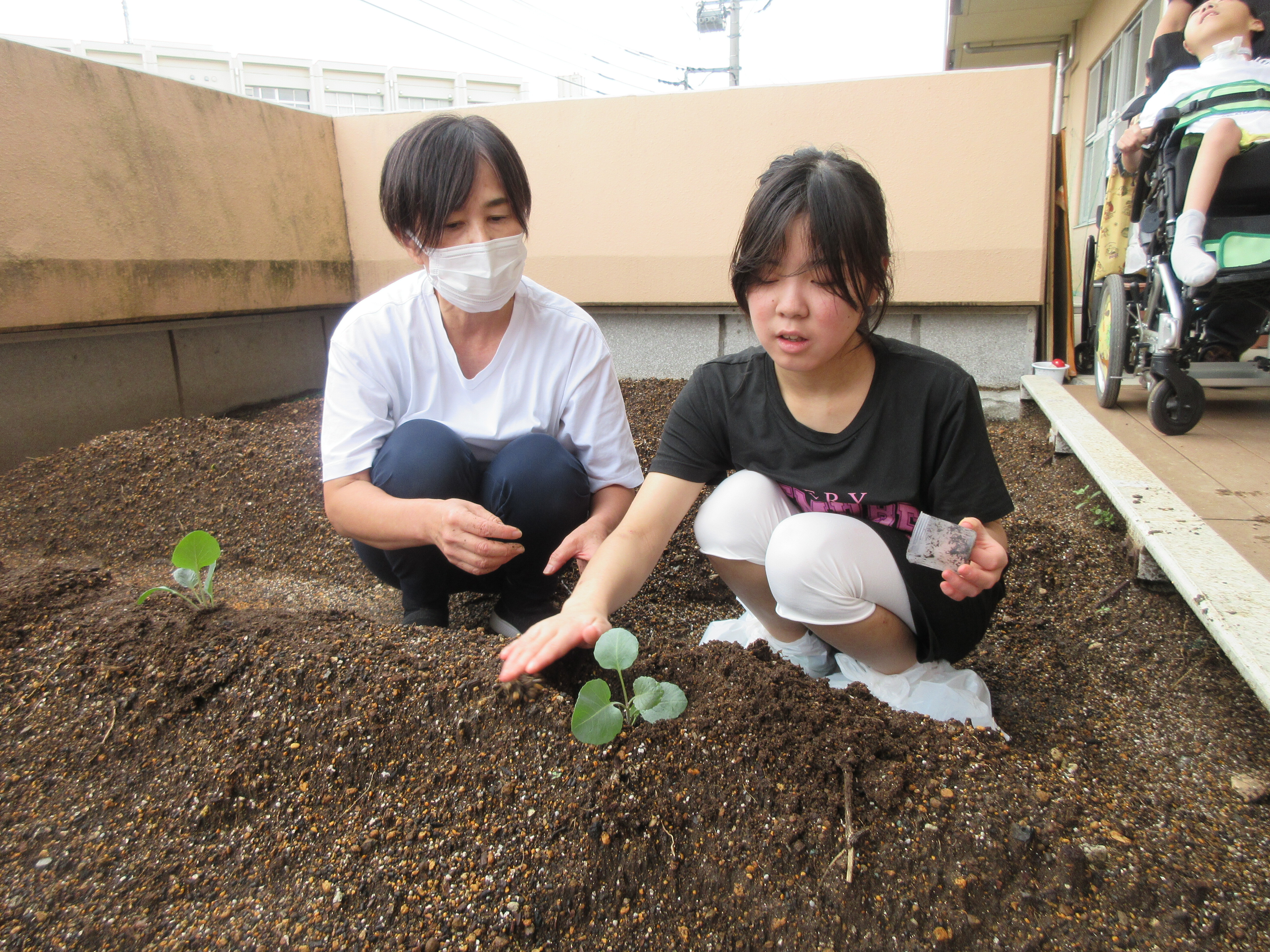 9月…大きく育つようにお願いしながら、土を整え、畑づくりをして、苗を植えました。
