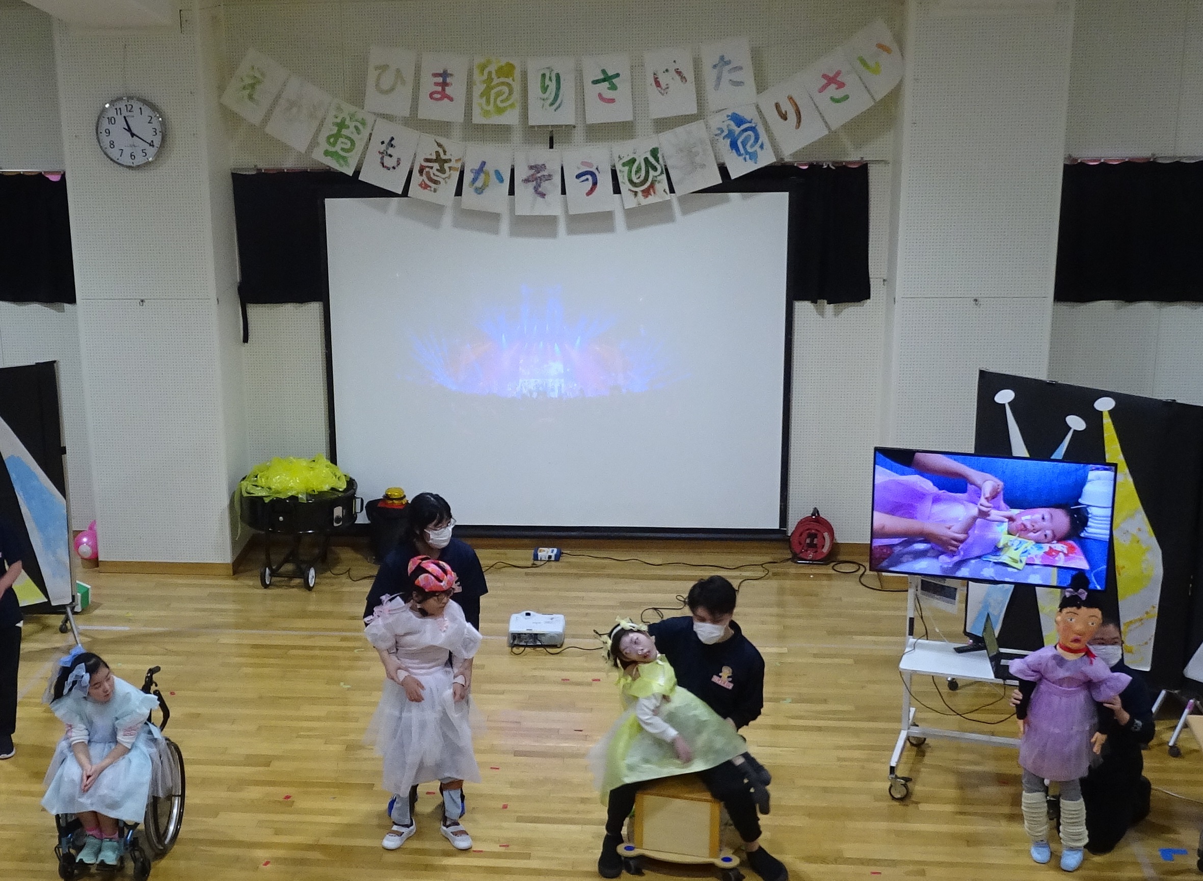 1組目は1・2年生女子によるアイドルグループ「ひまわりジッパー」で「わたしの1ばんかわいいところ」を踊りました。メンバーカラーの衣装に身を包み、かわいいダンスで会場を魅了しました。