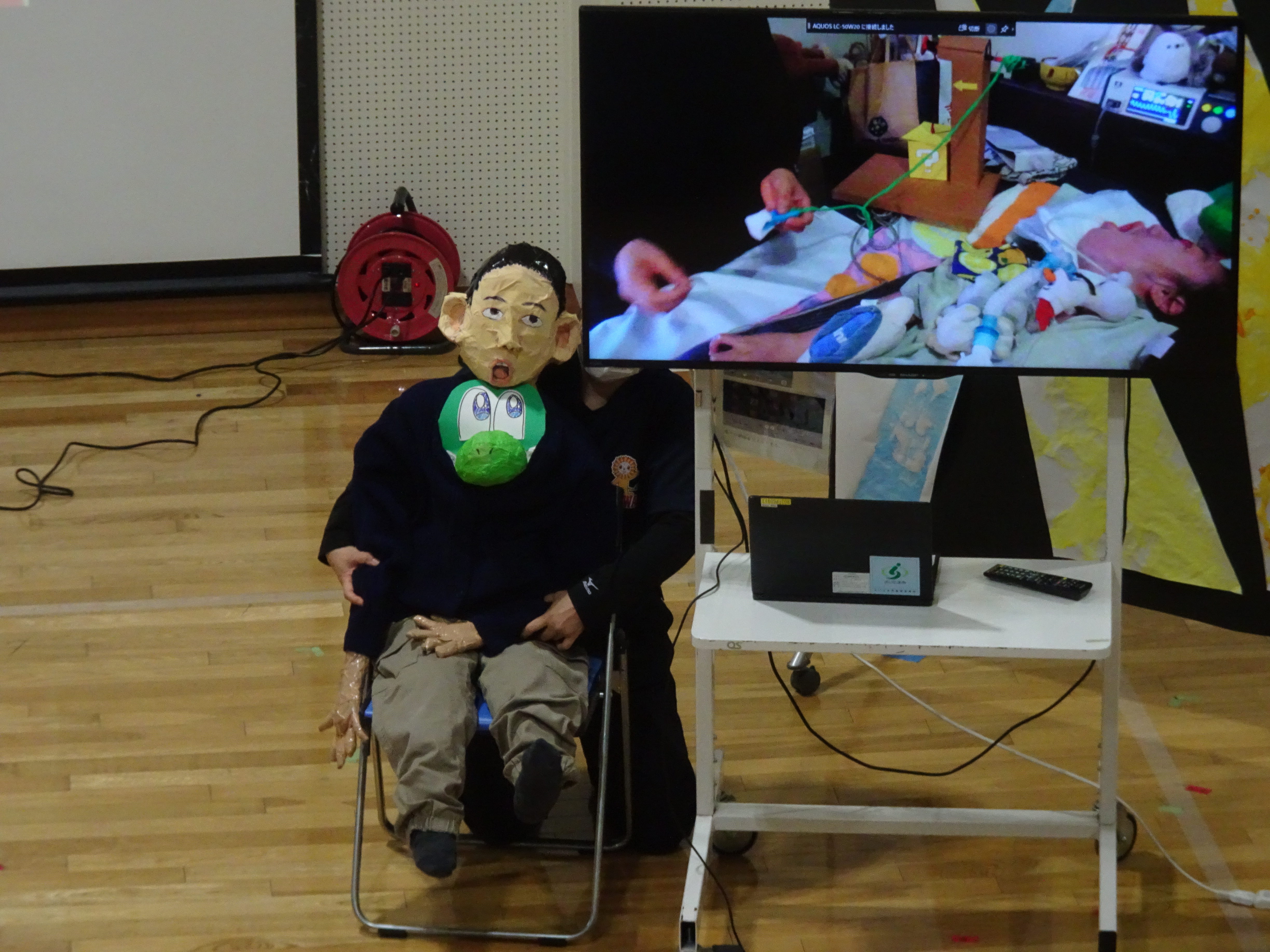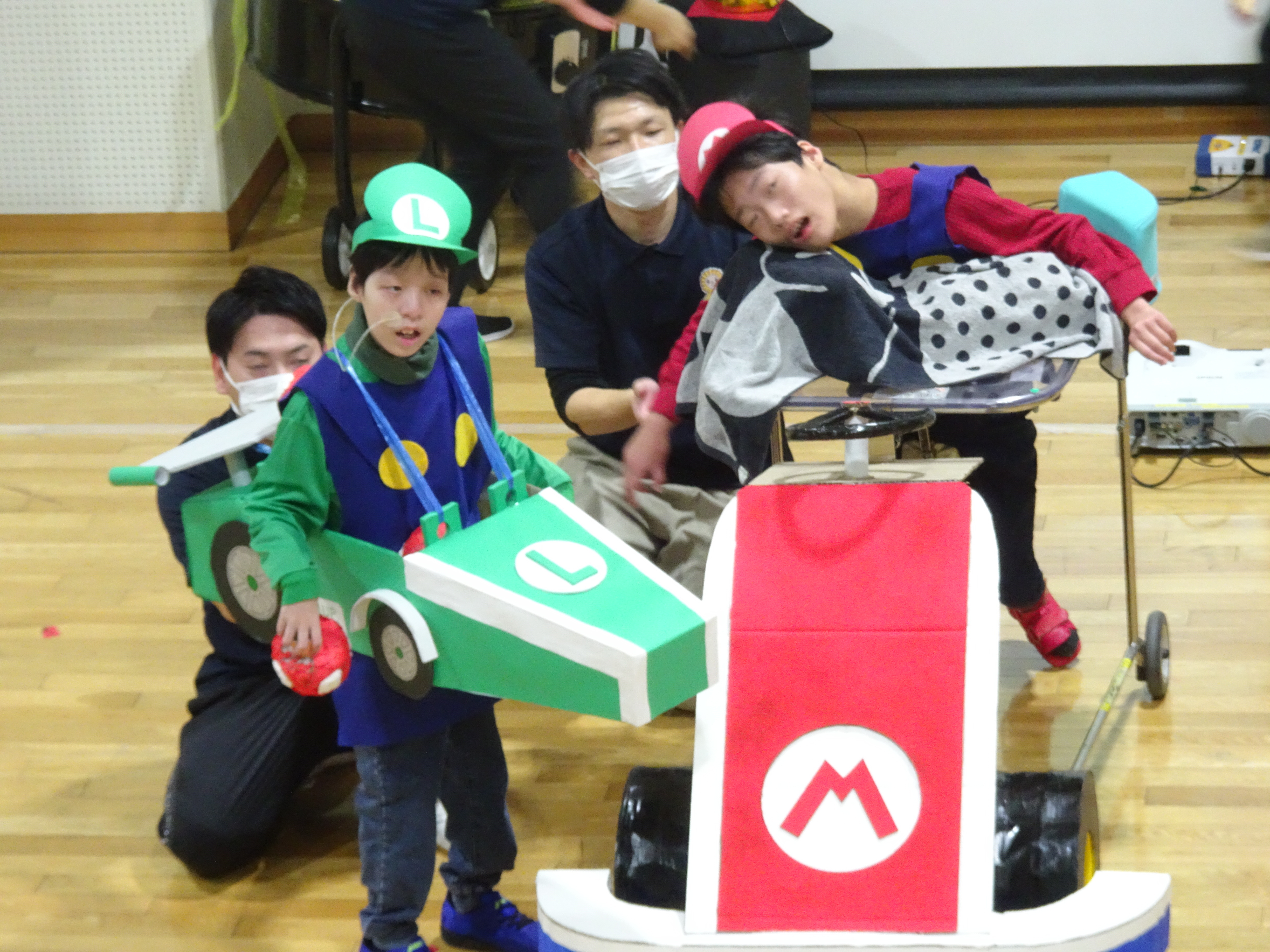 3組目は3年生、「ひマリオカート」によるレースが行われました。キャラクターに扮した衣装と機体でアイテムを集めました。そして審査員によりゴールデンブザーが押され、優勝となりました。