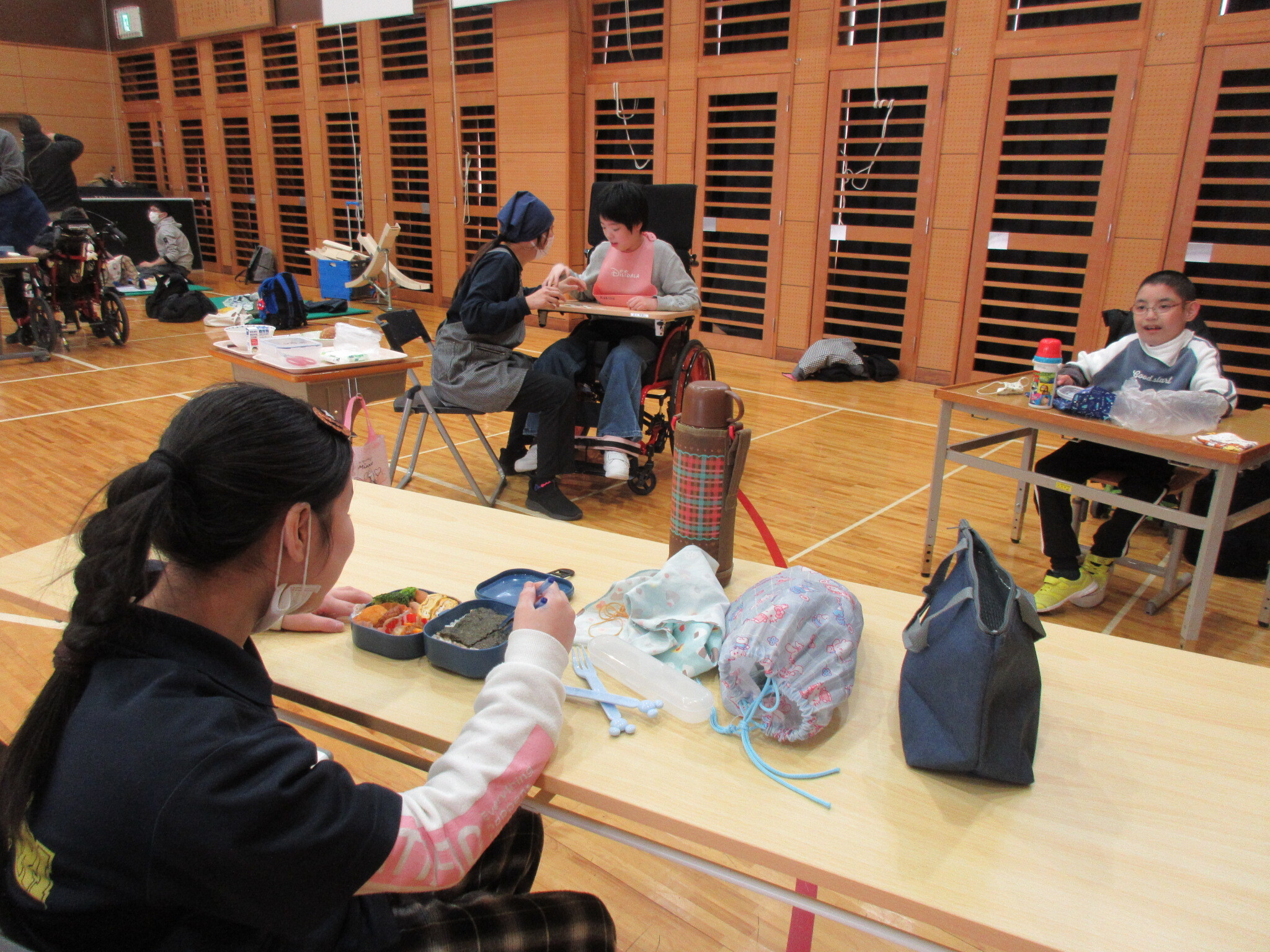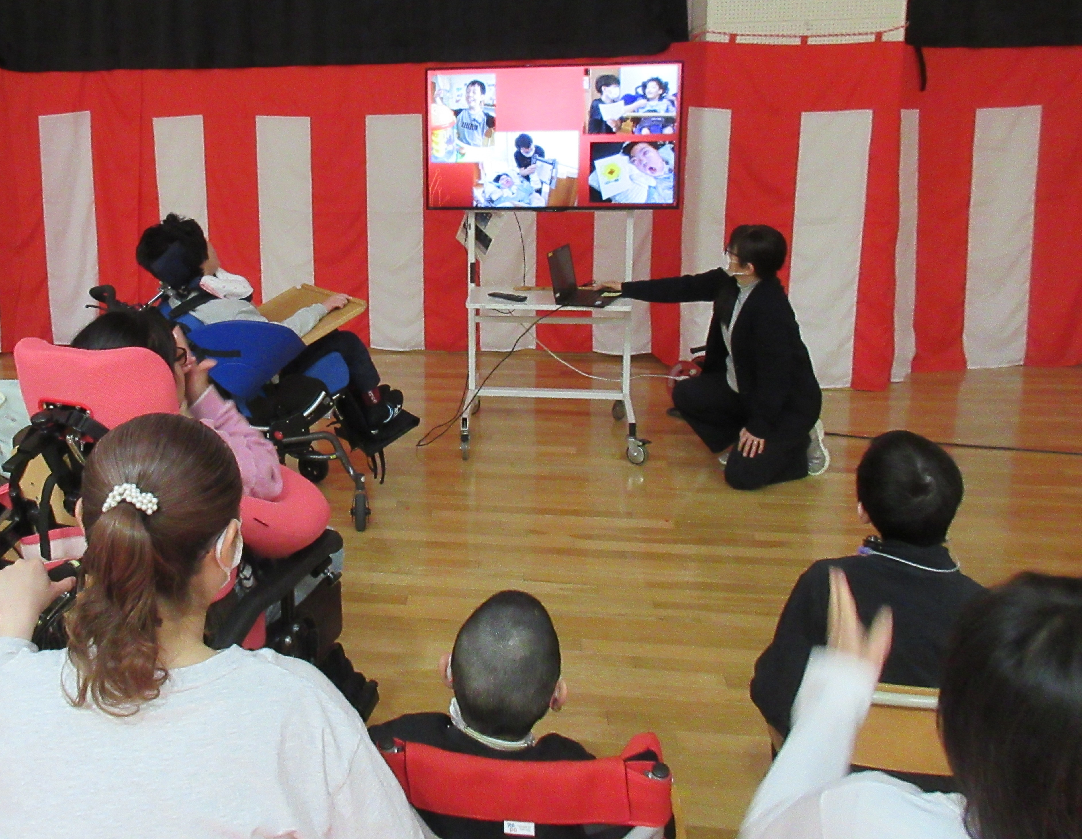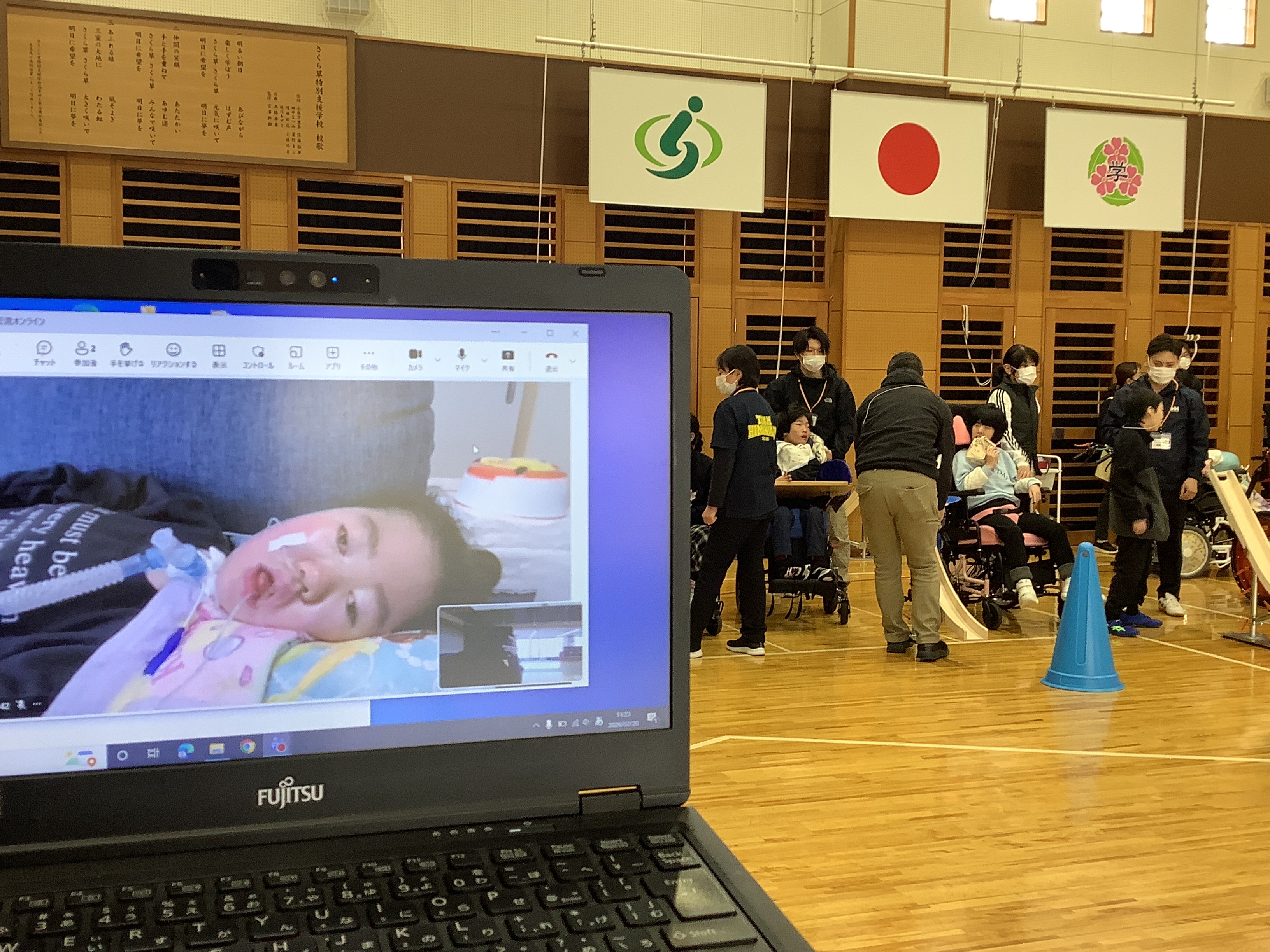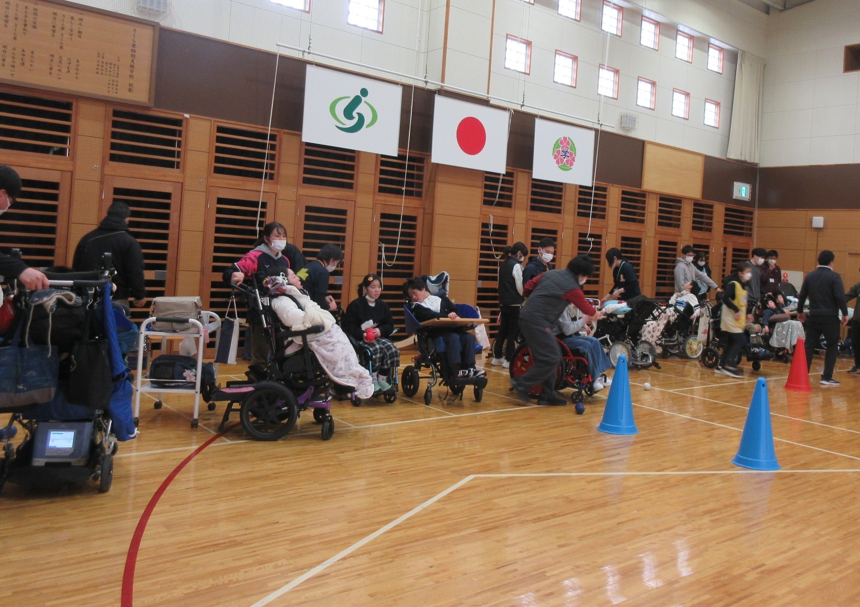 2月20日(金)にさくら草特別支援学校の中学部と交流してきました!スクールバスと借り上げバスに分かれて乗り込み、バスの旅を楽しみました。さくら草に到着後はボッチャで交流しました。混合チームでわいわいと活動でき、笑顔のあふれる時間となりました。訪問学級の生徒もオンラインで参加することができました。ボッチャの後は給食・お弁当タイムで3か所に分かれて一緒にお昼ご飯を食べました。今年度たくさんオンラインで交流した生徒たちが直接会って一緒に活動することができ、あっという間に時間が過ぎてしまいました。楽しい時間をありがとうございました。