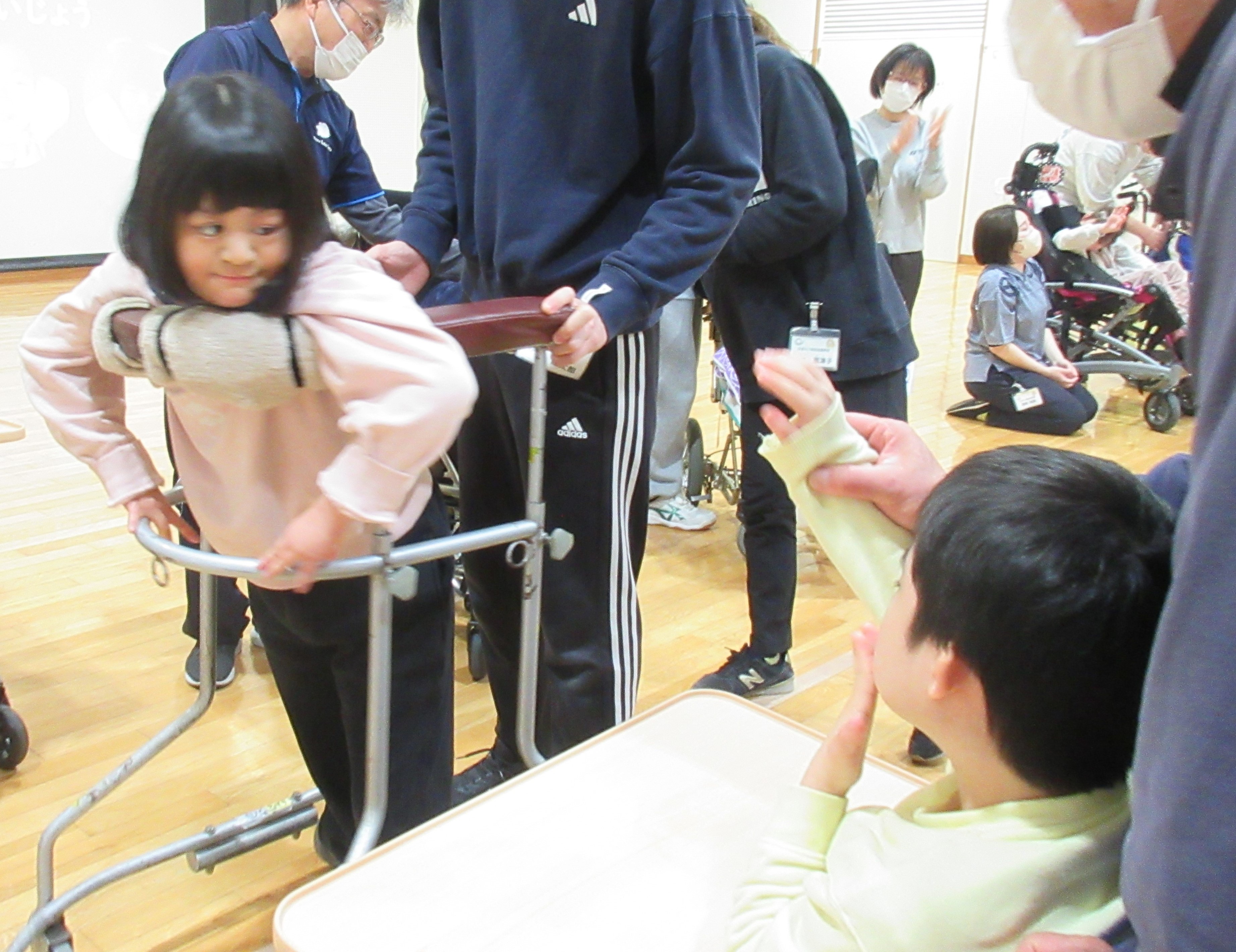 小学部1年生は、「しろくまのジェンカ」の曲でテンポの変化を身体で表現しました。みんな曲を聴いて笑顔になったり、身体を動かしたりして自分なりの表現で発表することができました。
