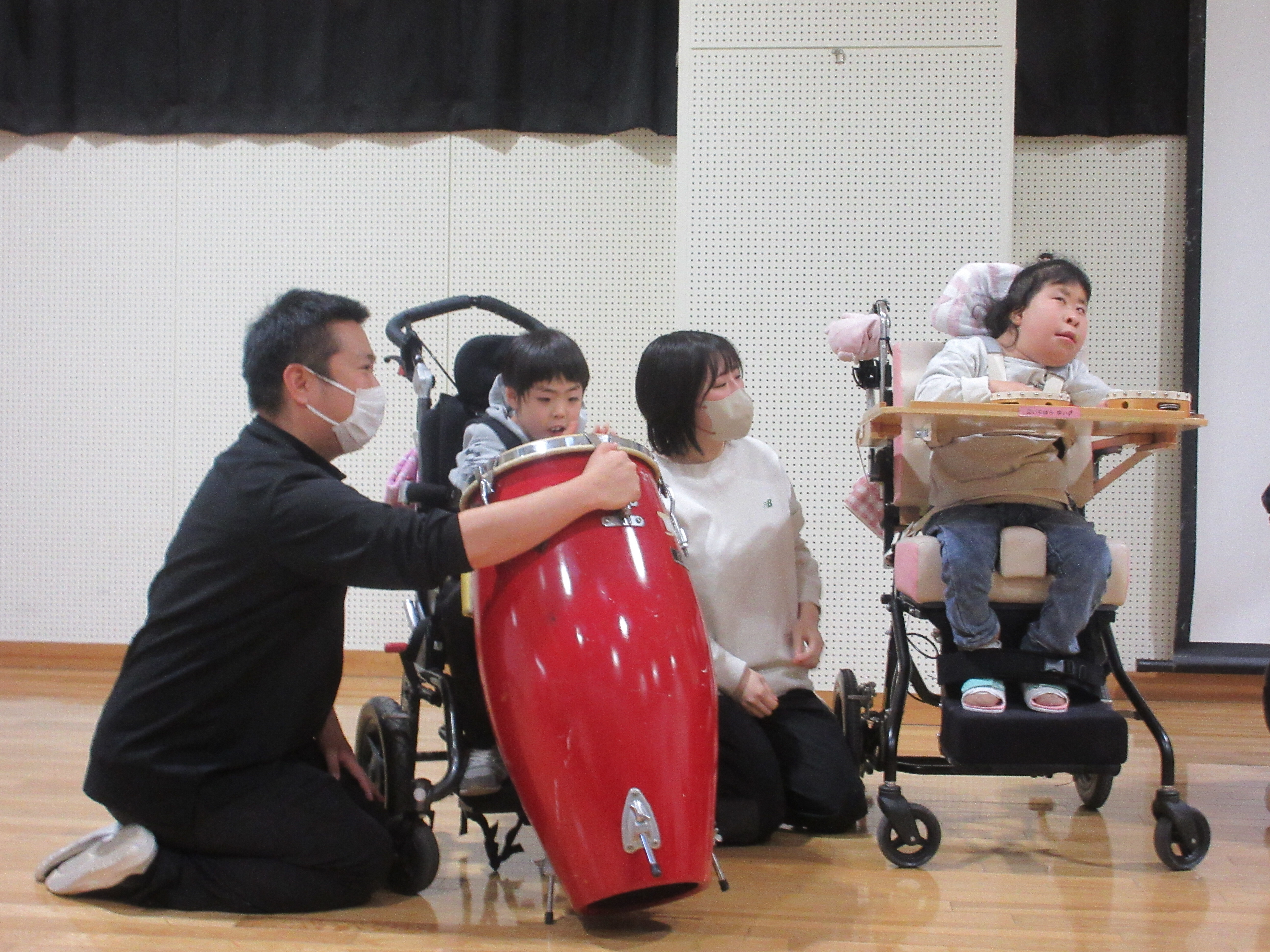 小学部2・3年生は、自分の得意な楽器を使って「がっきをならそう」という曲に合わせて演奏しました。3パートに分かれてそれぞれ演奏する場面では、少し緊張しながらも一生懸命発表を頑張っていました。