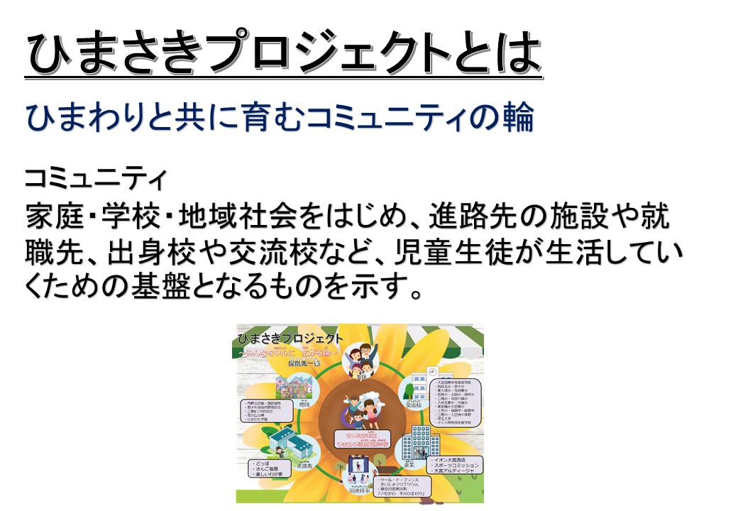 ひまさきプロジェクトは、「ひまわりと共に育むコミュニティーの輪」をテーマに、保護者や地域の方々